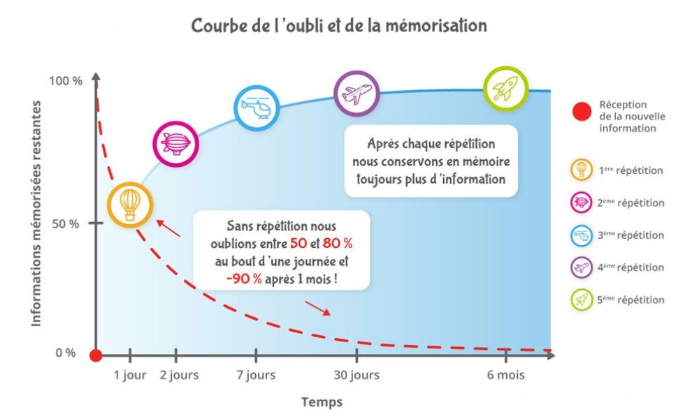 Pour lutter contre l’oubli, il ne suffit pas d’apprendre une information une seule fois : il faut la réviser régulièrement.