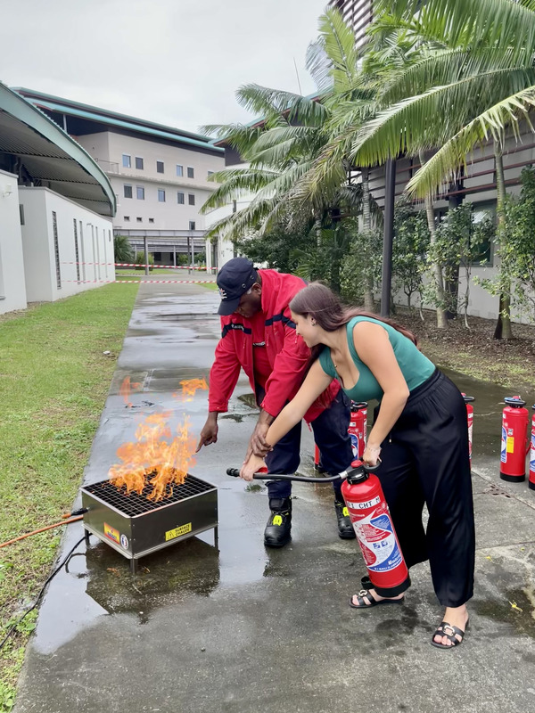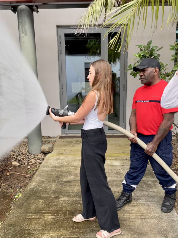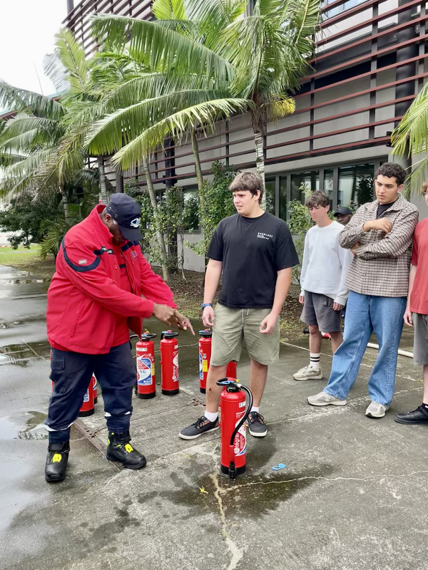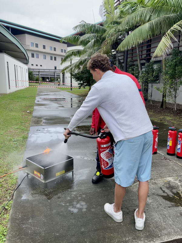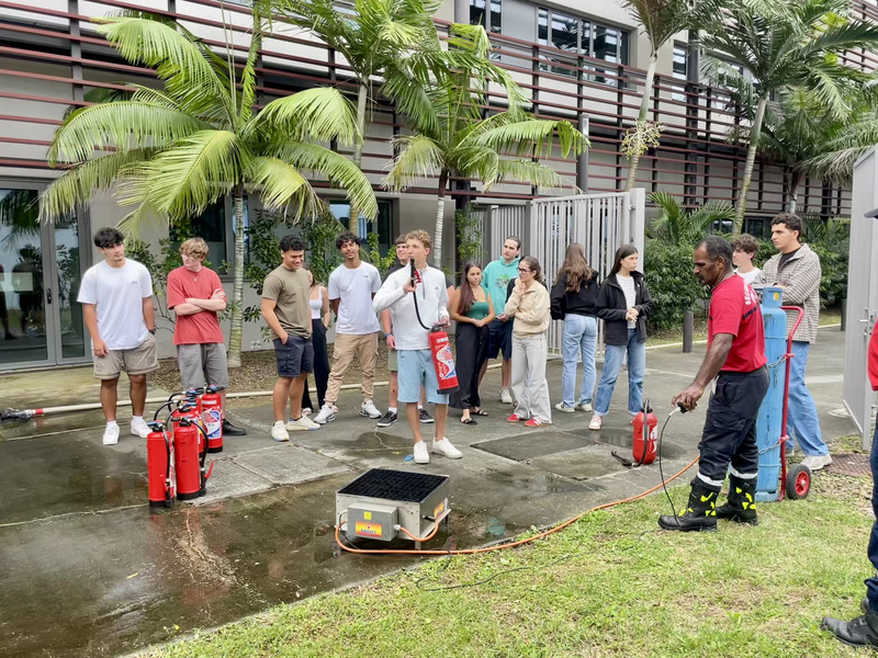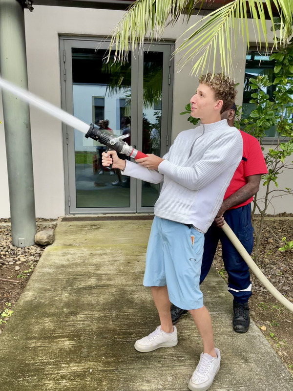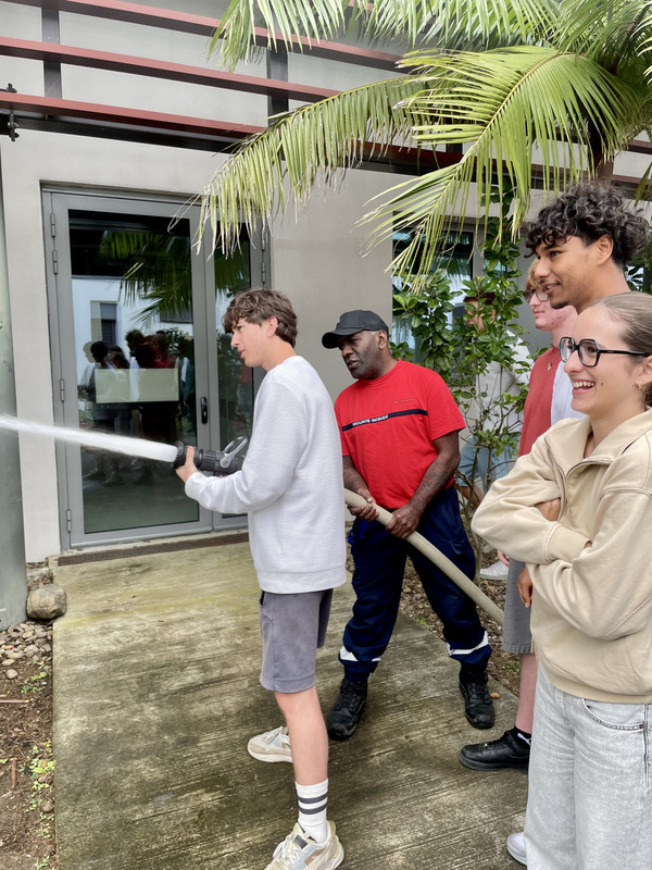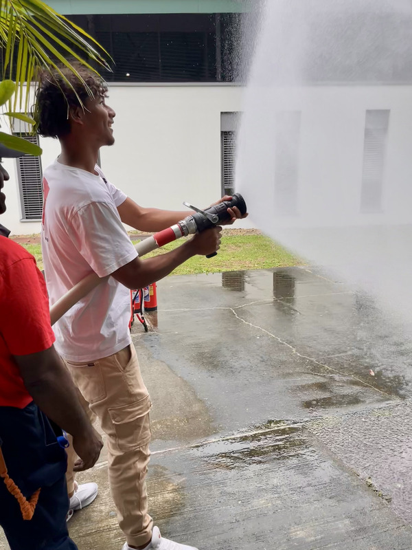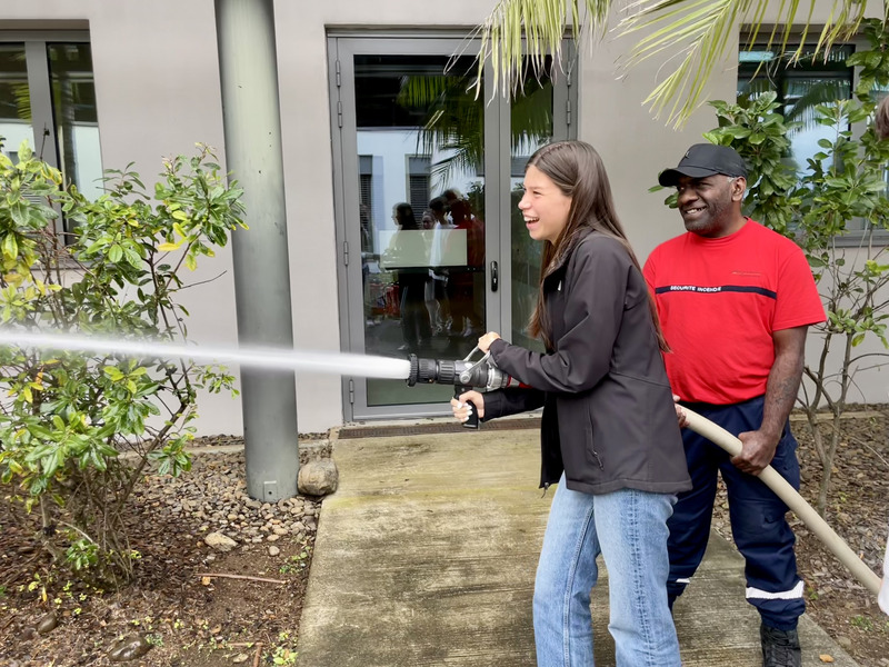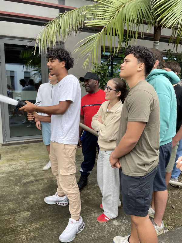 Nous avons commencé la visite par une rencontre avec les sapeurs-pompiers. Ils nous ont fait visiter la salle de contrôle où se situent les machines qui permettent d’informer les agents de sécurité en cas d’incendie dans l’établissement. Ensuite, nous avons pu manipuler du matériel d’intervention comme des extincteurs et lances à incendie. C’était impressionnant et très sympa à essayer !