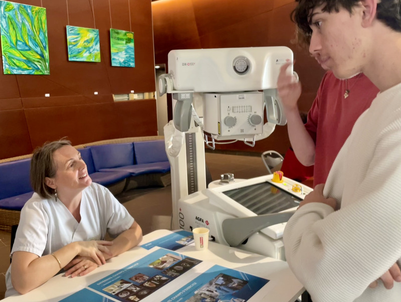 Après cette démonstration, nous avons passé environ 30 minutes dans le hall d’entrée où différents professionnels de santé comme des médecins, infirmiers et autres, nous ont présenté leurs métiers. C’était très enrichissant, car on a appris à quel point leur travail est varié et important.