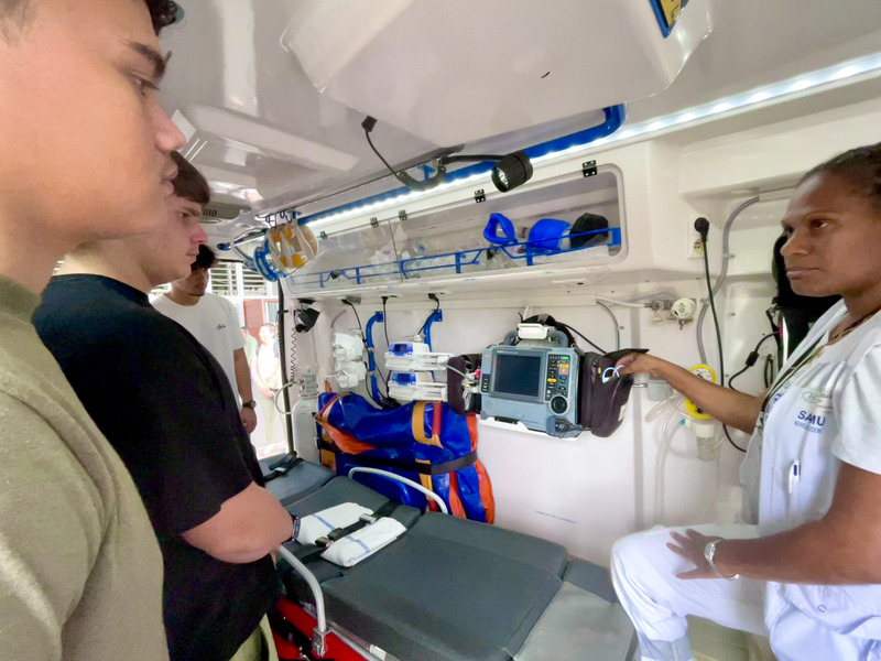 Puis, nous avons eu l’opportunité de monter à bord d’un camion du SMUR. Une urgentiste nous a expliqué son organisation et nous a raconté comment ils gèrent les situations critiques pendant les trajets. Par la suite, nous avons rencontré les opératrices du centre d’appel du SAMU qui répondent aux appels d’urgence. Leur rôle est essentiel, car ce sont elles qui déclenchent les interventions selon la gravité des situations.